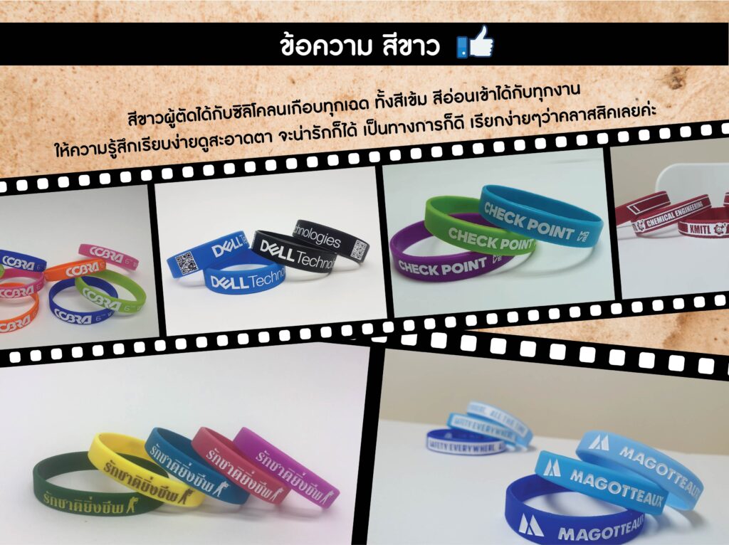 และนี้ก็เป็นตัวอย่างเล็กๆน้อยๆในการออกแบบริสแบนด์ให้สวยว้าวนะคะ นอกเหนือจากเรื่องสีแล้ว เรายังสามารถออกแบบการจัดวาง หรือดีไซน์ฟ้อนตัวหนังสือ และใส่โลโก้ รูปตัวการ์ตูนต่างๆ ได้อีกด้วย และก็ไม่ต้องเป็นห่วงเรื่องการใช้โปรแกรมในการออกแบบนะคะ ทางร้านเรามีทีมกราฟฟิคผู้เชียวชาญในการใช้โปรแกรมเพื่อดีไซน์โดยเฉพาะ ค่อยปรับดีไซน์ และดราฟโลโก้ให้แบบไม่คิดค่าใช้จ่ายเพิ่มเติมอีกด้วย คุณลูกค้าสามารถพูดคุยกับฝ่ายขาย ที่จะคอยประสานงานให้คำแนะนำและคำปรึกษาตลอดจนกระทั้งจบงานเลยค่ะ ใจดีขนาดนี้ อย่าลืมเข้ามาติดต่อสั่งทำหรือสอบถามข้อมูลเพิ่มเติมได้ตลอดเลยนะคะ ลิ้งเฟสบุ๊ค