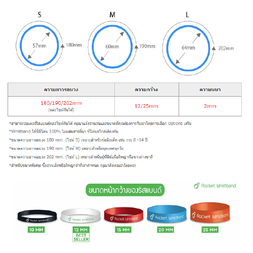ริสแบนด์ปั๊มจมลงสี 1 สี เวลาผลิต 10-12 วัน ริสแบนด์ปั๊มจมลงสี 2 สีขึ้นไป เวลาผลิต 14-18 วัน |